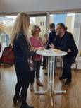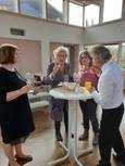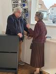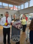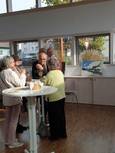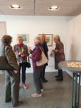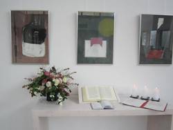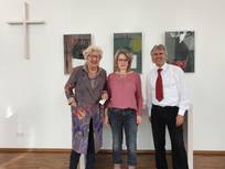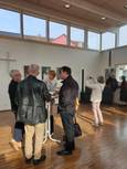 Pfarrer Klaus ging in seiner Predigt auf die Bedeutung der Kunst ein. Frau Heidi Reubelt führte in das Werk des verstorbenen Kunstschaffenden Manfred Fuchs ein. Mit einem Glas Sekt wurde die neue Ausstellung eröffnet.